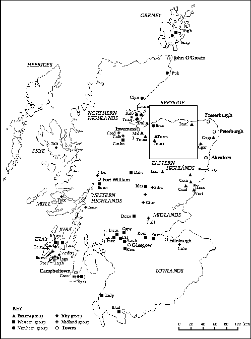 northern, southern, western and eastern Highlands, Speyside, Midlands and the