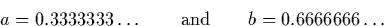 Given that we must implement arithmetic operations from left to right on streams, it quickly becomes apparent that representations such as binary and decimal are not adequate. Surprisingly, using these representations even simple operations such as addition and subtraction are not computable. For example, suppose we wish to compute the result (a + b) of adding two numbers which start as follows: