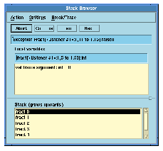 For more details of the stack browser, see Chapter 5, "Debugging".