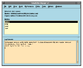 Notice also that the action of reading dependencies is recorded on the compilation manager's History menu. All successful actions in the compilation manager are recorded on it and they can repeated by selecting them from the menu.