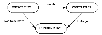 Figure 2.6 Relationship between source and object files in MLWorks.