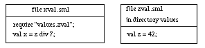 If xval, a top-level unit, still wants to require values.zval, the require statement must be changed: