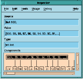 Now choose Usage > Inspect and click on the root node to see all the children of this hundred-element list.