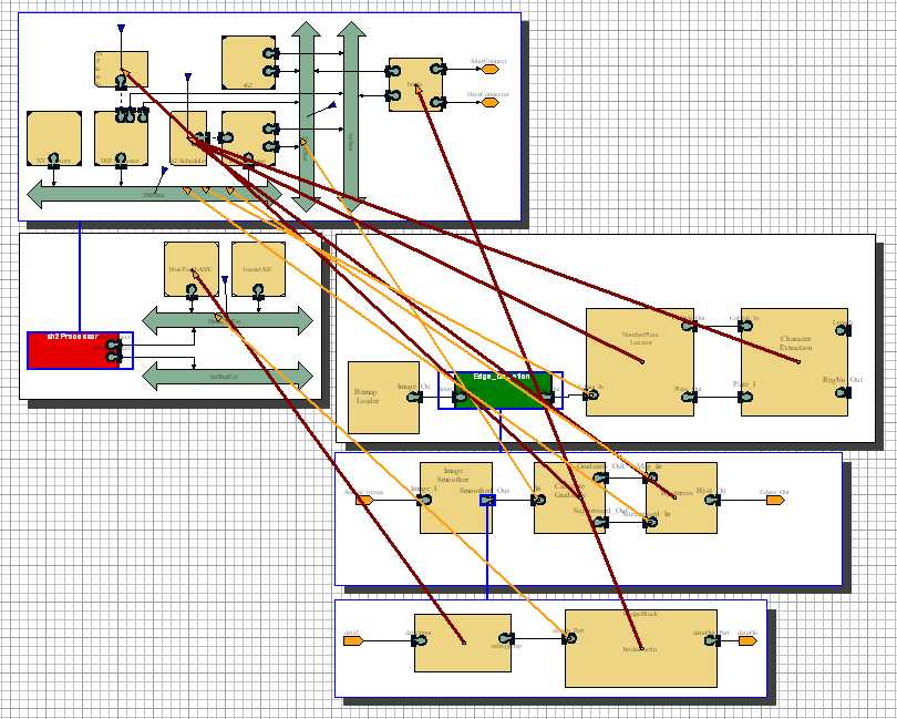 A further point to note is that the initial 'Image Smoothing' block in the application was always taking a significant time to run. For example, the image in Fig. 7 shows a possible mapping with the image smoothing block mapped to the faster DSP processor.